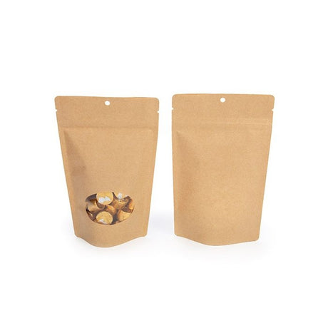 Prix habituel €26,90Prix unitaire /IndisponibleStock très faible (1 unité)Doypack en kraft à maintien vertical avec fenêtre en forme d'éclair 13x7,9x20,6 cm - 25 pièces
