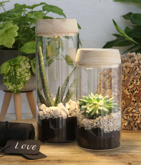 Prix habituel €31,80Prix unitaire /IndisponibleStock très faible (6 unités)Glass cylinder with LED in wooden lid 23cm high - Packlinq