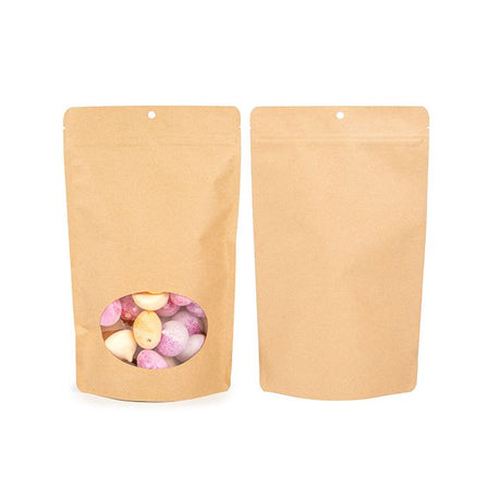Prix habituel €28,15Prix unitaire /IndisponibleDoypack compostable en kraft 17.1x8.9x28.6 cm avec fenêtre ovale - 100 pieces