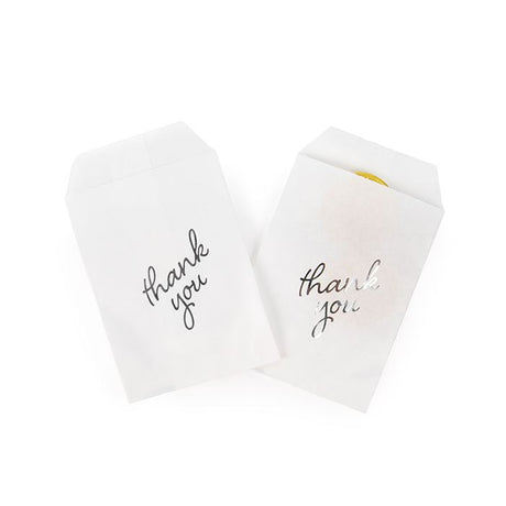 Prix habituel €26,40Prix unitaire /IndisponiblePaper Bags White with Silver Thank You 7,6x12,7 cm - 100 pieces